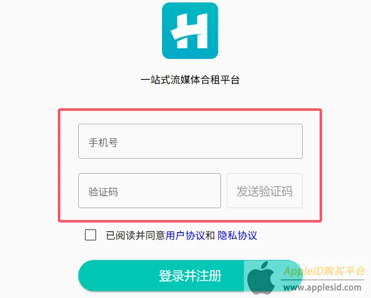 2、进入登录界面,输入手机号,接收验证码,勾选同意条款,点击“登录并注册”。